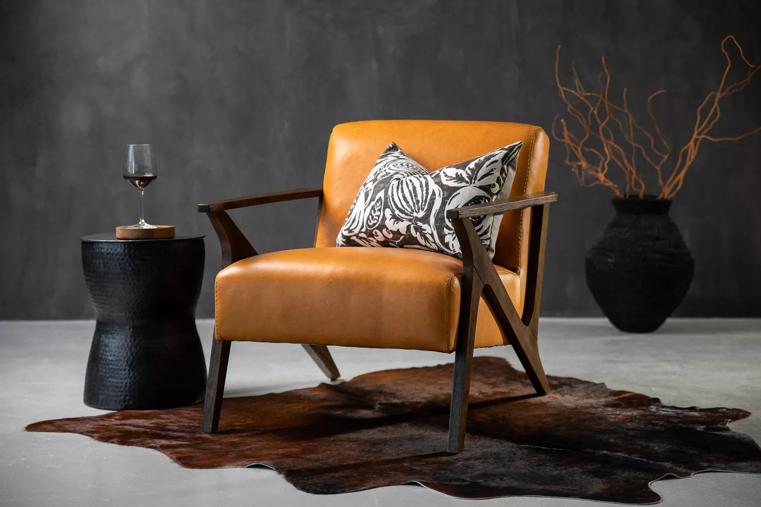 Poltrona URBE en cuero natural de primera selección, diseñada para ofrecer un alto desempeño estético y funcional. Su estructura interna está fabricada en madera maciza inmunizada, garantizando durabilidad y estabilidad.