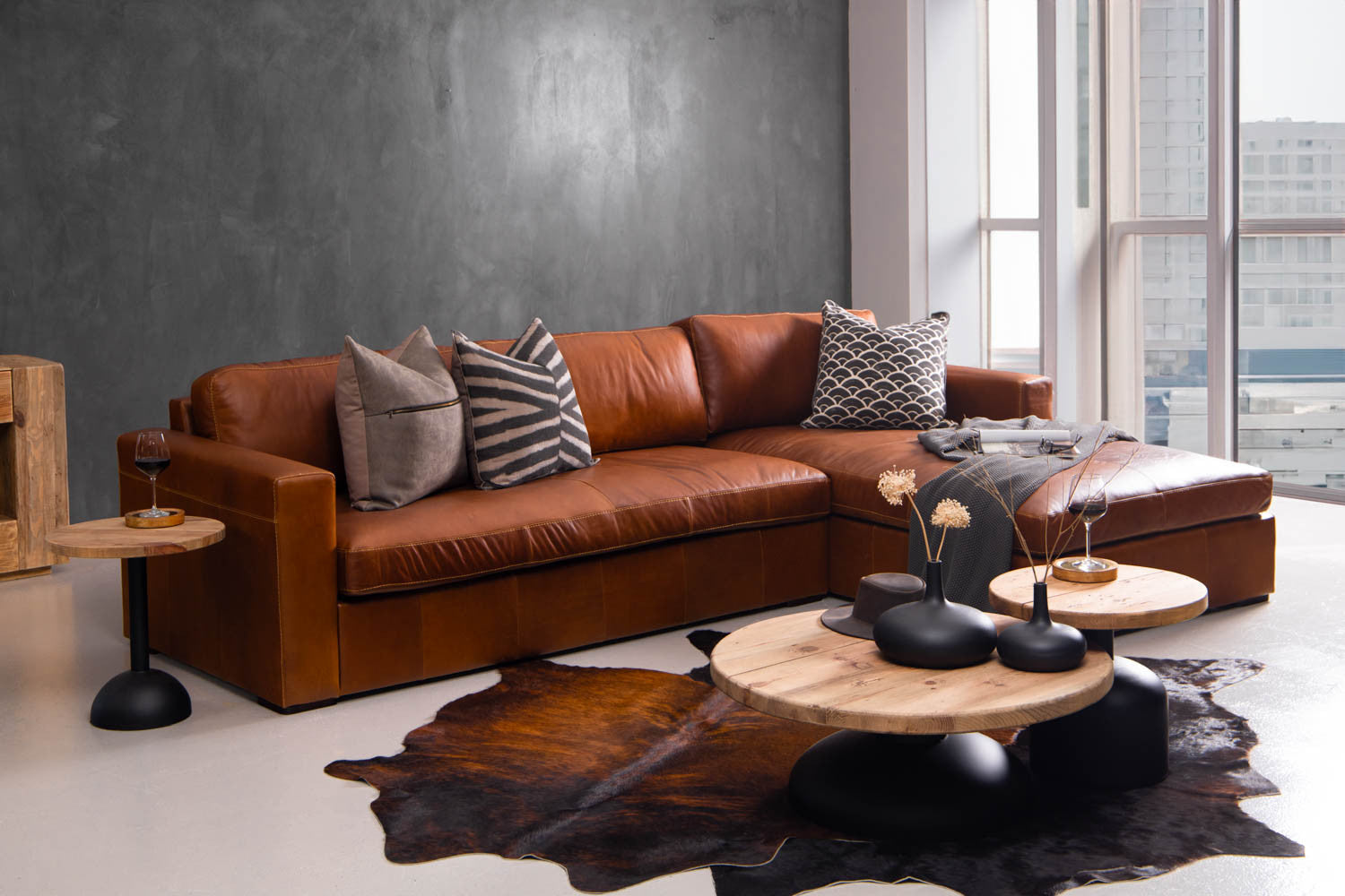El sofá de cuero en forma de L de Archer es una adición premium a su espacio de vida o entretenimiento.